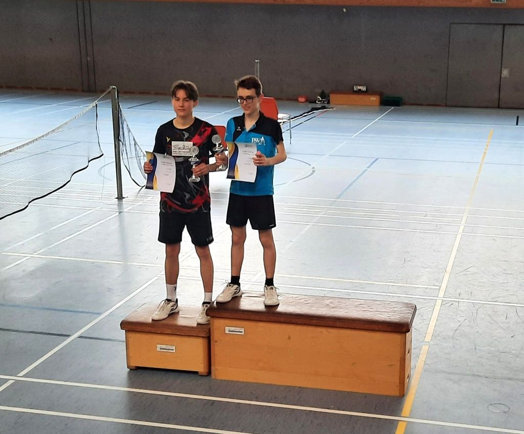 Im Doppel hingegen haben sich Samu und sein Doppelpartner Max Pfanz-Sponagel (SF Dornstadt) andere Ziele gesetzt - unter dem Motto: Neuer Tag - Neues Glück! Leider trafen die zwei gemeldeten PSV-Spieler gleich zu Beginn mit ihren Partnern aufeinander. Samu und Max konnten dieses Spiel für sich entscheiden. Danach gewannen sie auch noch zwei weitere wichtige Partien gegen ihre Dauergegner aus BaWü bzw. Bayern. Im Finale wartete das Brüderdoppel Wohlers aus Bergedorf. Leider war hier im Dreisatz Schluss. Der 2. Platz auf einer B-RL ist bisher ihr bestes Ergebnis zusammen im Doppel.