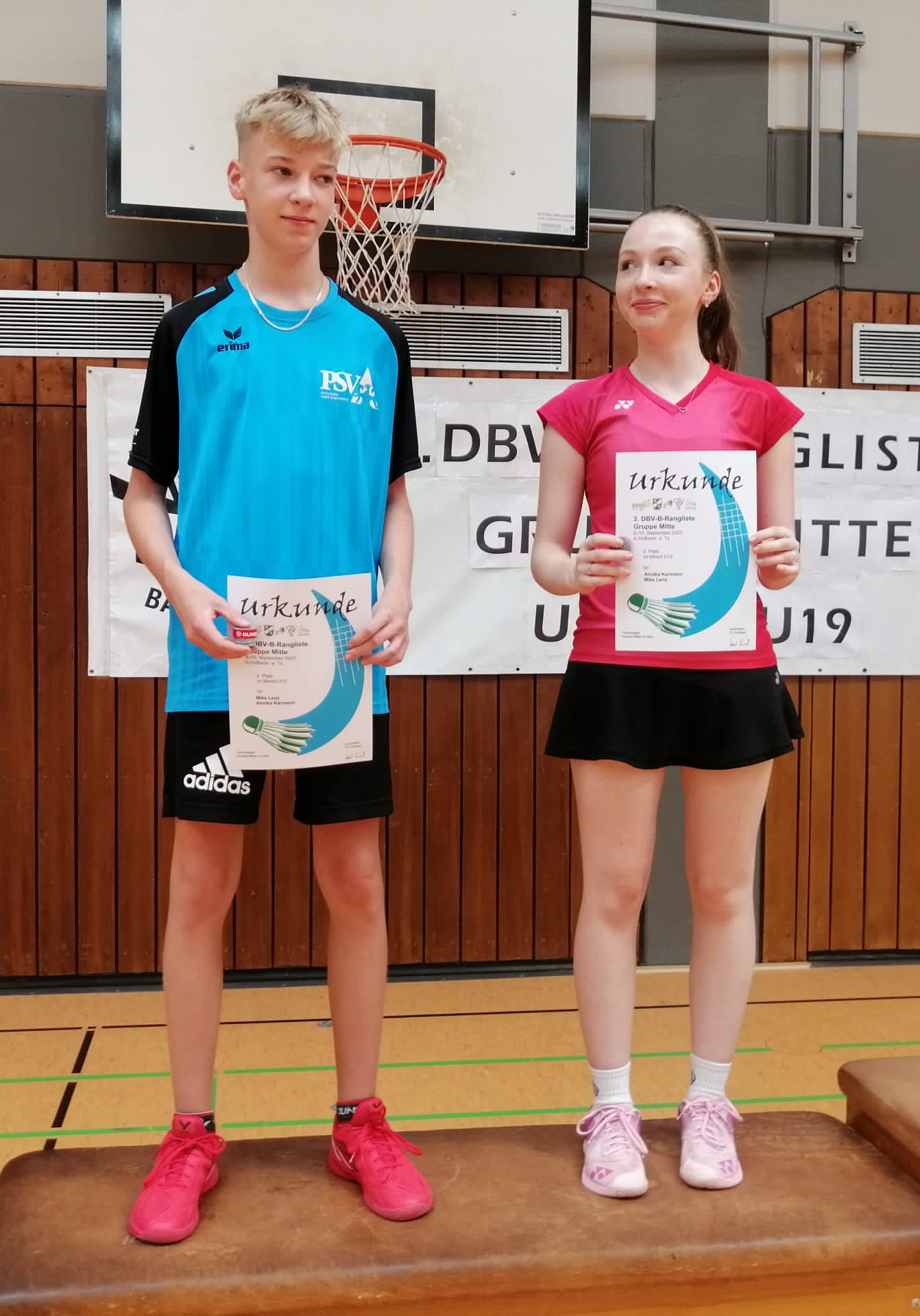 Am letzten Sommerferienwochenende bei hochsommerlichen Hallentemperaturen waren Samuel Seitz und Mika Lenz zu Gast in Hofheim am Taunus, um sich bei der B-Rangliste mit den Spielern der DBV-Gruppe Mitte (Saarland/Hessen/Rheinland-Pfalz/Thüringen) in den Altersklassen U15/U17 zu messen.