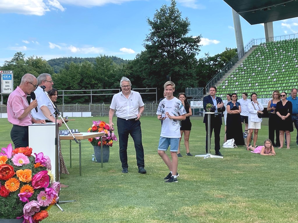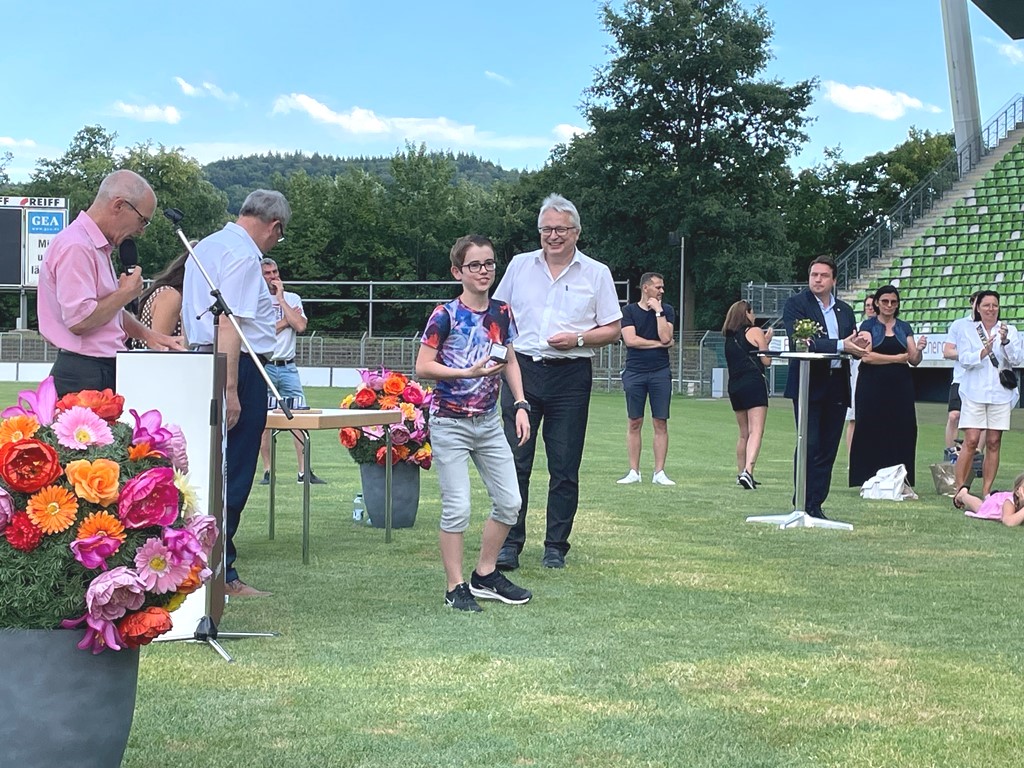 Mika Lenz (13 J.) und Samuel Seitz (15 J.) waren zwei Kinder aus der PSV Badmintonabteilung der insgesamt 78 Sportler*innen, die von Oberbürgermeister Thomas Keck und dem Ersten Bürgermeister Robert Hahn die Sportmedaille in Silber in Empfang nehmen durften.