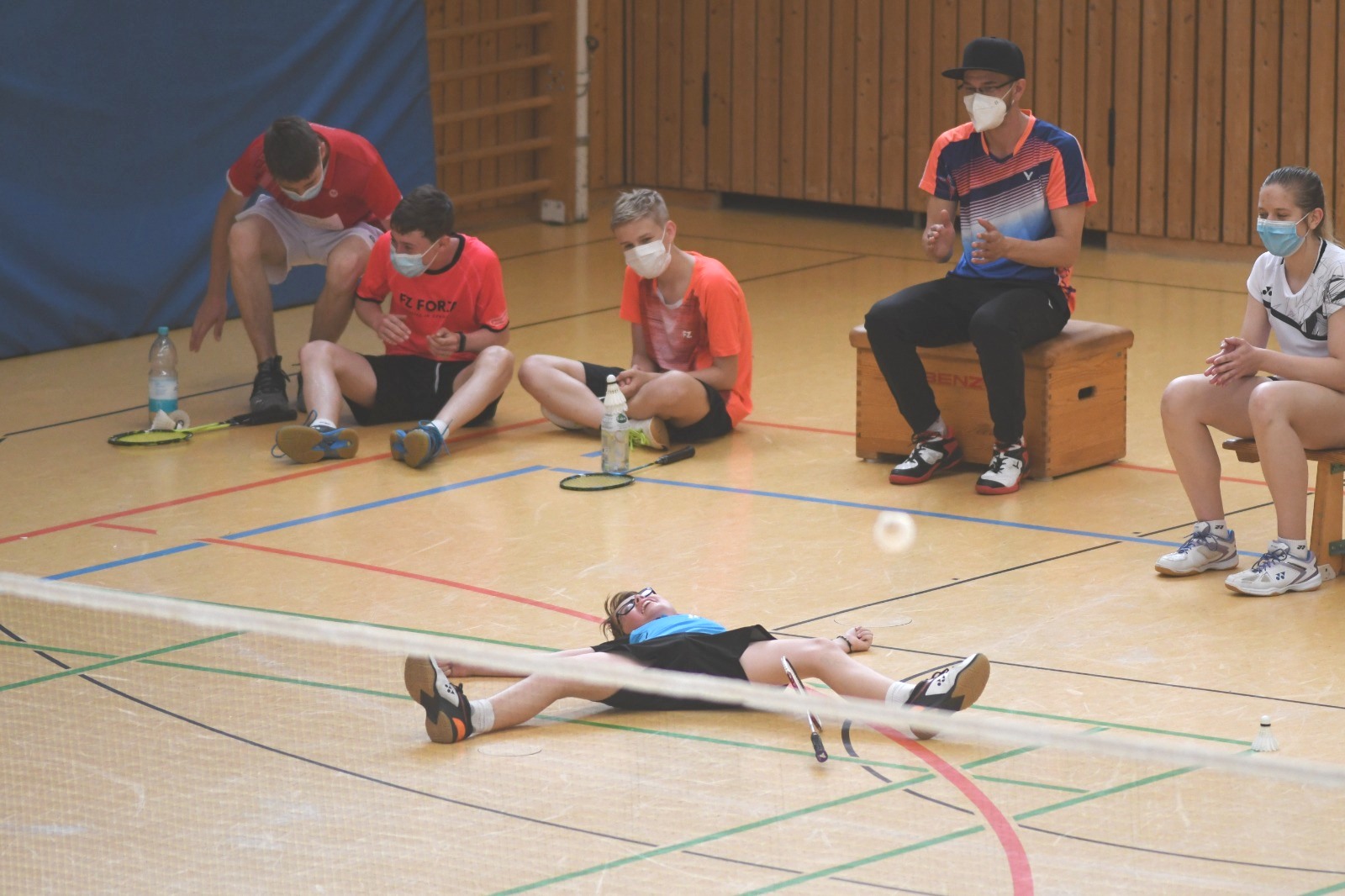 Am Nachmittag folgte das Doppel mit seinem Partner Fabian Quendt vom SV Primisweiler. Durch einen guten 5. Setzplatz hatten sie in der ersten Runde ein Freilos und waren automatisch im Achtelfinale. Gleich das erste Doppel aber hatte es wieder in sich und wie gewohnt haben die zwei Jungs einen Dreisatz gespielt. Das gegnerische Doppel Mika Dörschel/ Henri Saur (TV Refrath/BC Phönix Hövelhof) konnte das Spiel sehr knapp gewinnen. Doch, dass die Zwei den Kopf nicht hängen lassen und weiterkämpfen, war klar. Der nächste Dreisatz folgte zugleich und diesen konnten sie gegen Thomas Schuster/Vincent Zeller (TSV Freystadt) für sich entscheiden. Danach war allerdings bei Samu die Luft komplett raus und er war nach zwei weiteren Spielen nur noch als Schatten auf dem Feld. Mit dem 11. Platz mussten sie sich zufriedengeben. Völlig erschöpft und mit insgesamt 5 Dreisatzspielen von insgesamt 8 Begegnungen war Samu der „Dreisatzkönig“. Selbst die Turnierleitung meinte spaßig: „Wenn du noch einen Dreisatz spielst, wirst du disqualifiziert“.